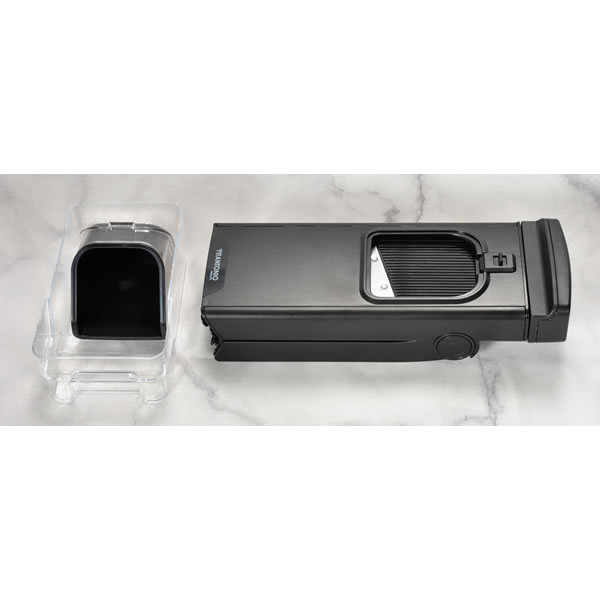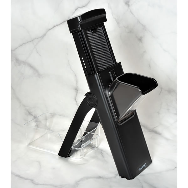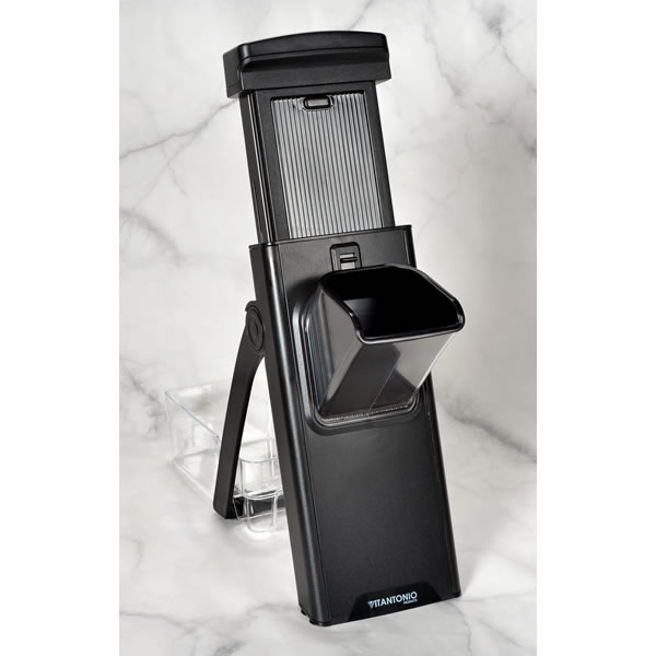 The Vitantonio Vertical Mandolin Slicer & Chopper delivers over 40 versatile cutting styles, with adjustable thickness ranging from 0.1 to 8mm—perfect for slicing, dicing, and julienning in seconds. Built with a BPA-free plastic frame and razor-sharp stainless steel blades, it includes a spacious feeding chute, a rebound handle for effortless use, a non-slip base for stability, and folds neatly for compact storage. Easy to clean in the dishwasher and beautifully gift boxed.